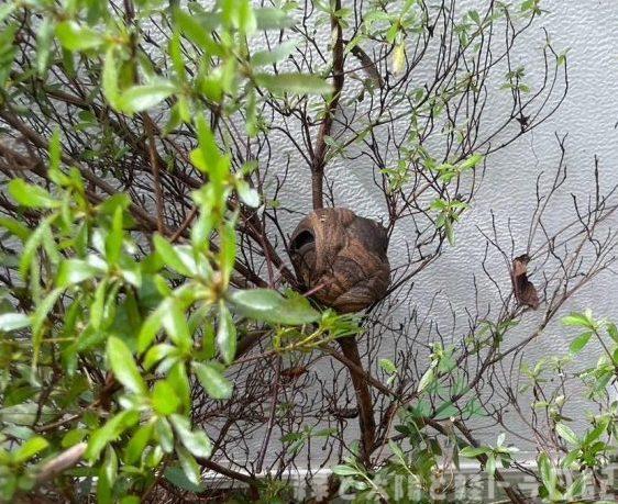 それでも戻ってくる蜂がいたから巣があるかも…と、しばらく手前を先に片付けてからまた奥のツツジの剪定に取り掛かったら巣を発見しました😬