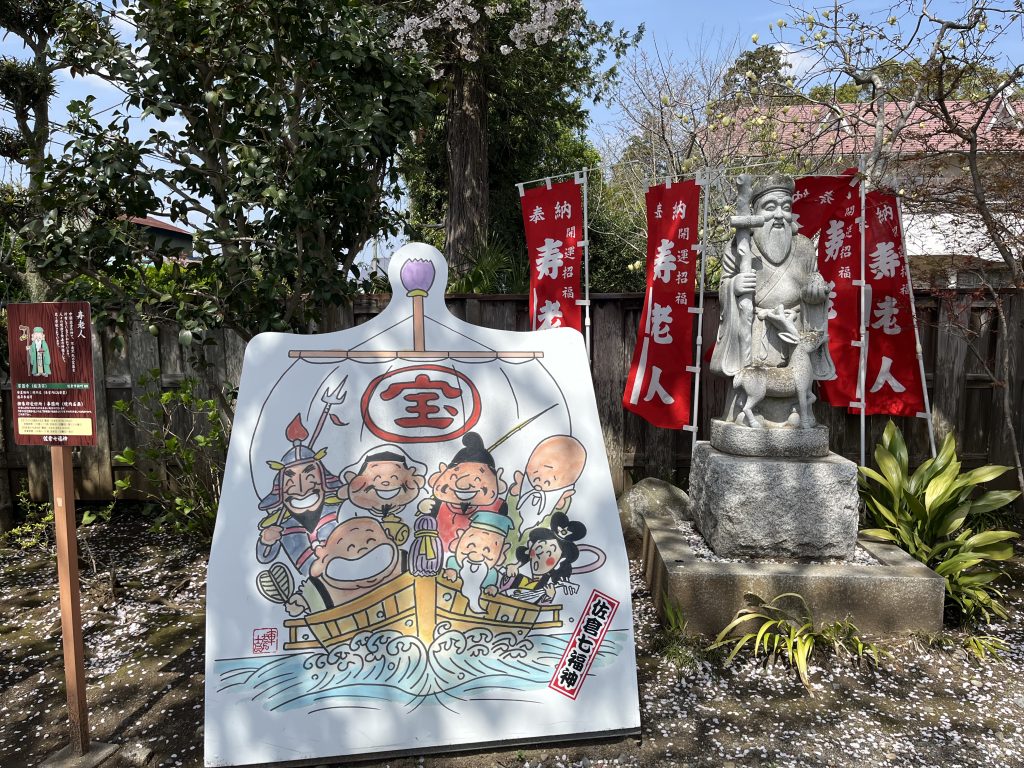 秘仏になっていて公開していないのもあったりするのですが、この赤い旗と可愛いイラストの入った看板が目印のようです。このエリアには七福神がいる寺社以外にもまだまだあって、宗派もそれぞれ違うんですね💦すごく狭い間隔であるから檀家さんの数と釣り合うのか心配になるくらい!