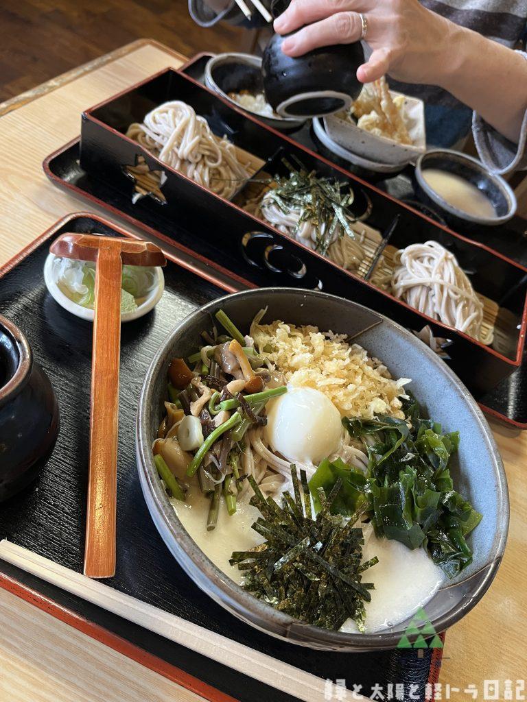 房州屋さんのお蕎麦は、人気店らしく食べれるまで時間がかかりましたが、ツルもちっとした舌触りのいい蕎麦で甘みのある蕎麦つゆといろんなバリエーションで食べられるトッピングでとても美味しくいただきました♡