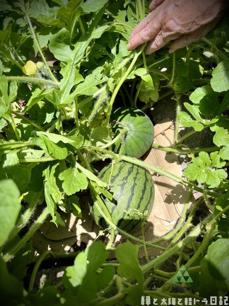家庭菜園のスイカもこんなに立派なスイカになるんだー😍