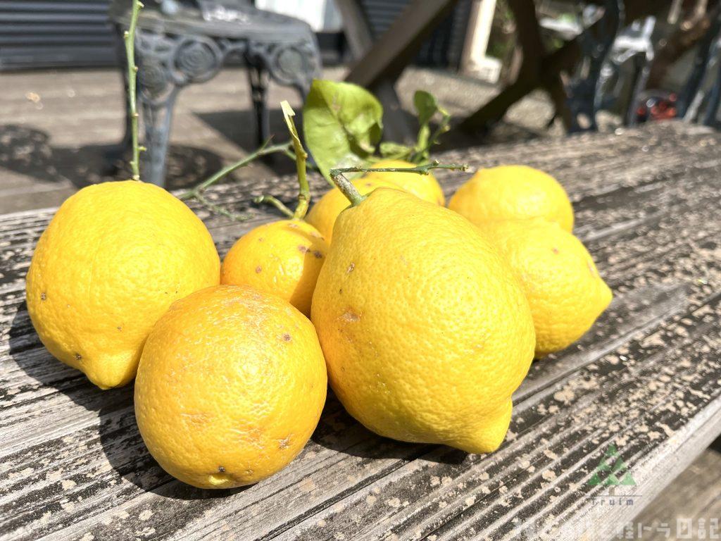 レモンの木とゆずの木に立派な身が実っていました🍋